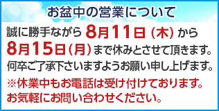 営業時間 9:00~19:00(平日・土曜)※事前予約により、日曜日・祝日も相談対応
